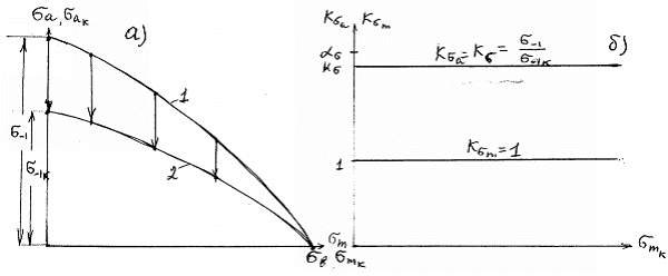 для всего диапазона значений средних напряжений (рис.2.17). Следует отметить, что этот подход широко используется при определении коэффициента запаса прочности деталей, работающих в условиях переменных напряжений.