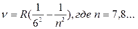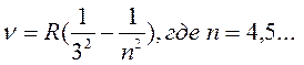 В 1885г. швейцарский физик И. Бальмер (1825-1898гг.) установил, что частоты девяти линий в видимой области спектра водорода удовлетворяют соотношению:
