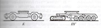 Пр – прицепного; К - короткобазового; ПГ – пневмоколёсно-гусеничного.