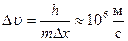 , т.е. от 0 до 2·106м/с, т.е. оказывается совершенно неопределенной (а, следовательно, и импульс не определен).