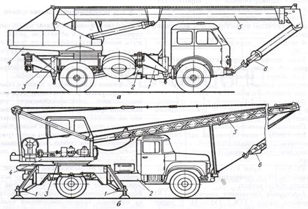 а – КС-6471 – на шасси автомобильного типа; б – КС-6371 – на короткобазовом шасси;