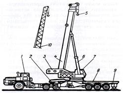 стрелы; 8 - кабина управления; 9 – выносная опора.