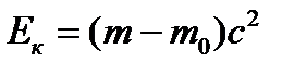 Уравнение (6.6), равно как и (6.5), выражает фундаментальный закон природы – закон взаимосвязи (пропорциональности) массы и энергии: полная энергия системы равна произведению ее массы на квадрат скорости света в вакууме. Отметим, что в полную энергию Е не входит потенциальная энергия тела во внешнем силовом поле. Закон (6.6) можно, учитывая выражение (6.3), записать в виде