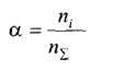 Степенью электролитической диссоциации называют отношение числа молекул распавшихся на ионы пi, к исходному числу молекул пΣ: