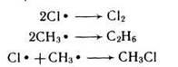 Последовательно идущие реакции роста цепи могут прерваться, если произойдет исчезновение свободного радикала. Чаще всего обрыв цепи происходит за счет взаимодействия радикалов хлора между собой.