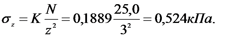2. По упрощенной формуле Ж. Буссинеска определяем вертикальное сжимающее напряжение: