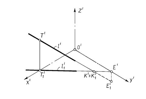T – фронтальный след прямой l, K – горизонтальный след и E – профильный след (рис.13.9).