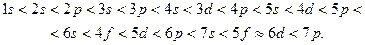 | 1s 2s 2p 3s 3p 3d 4s 4p 4d 4f 5s 5p 5d 5f 5g |