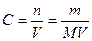 4. Молярная концентрация, или молярность, С – число молей n растворенного вещества в 1 л раствора, моль/л, или сокращенно М: