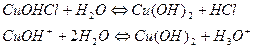 Гидролиз солей, образованных слабым основанием многовалентного металла, рассмотрим на примере гидролиза хлорида меди (II). Уравнение гидролиза данной соли имеет вид