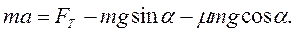 движетсявверх по наклонной плоскости с ускорением а, то по второму закону Ньютона, учитывая, что
