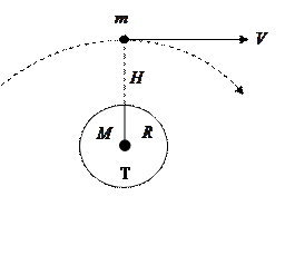 на высоте Н над поверхностью Земли, R – радиус Земли, М – масса Земли (Рис.47).