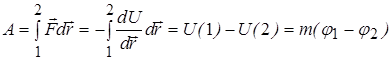 Зная потенциал поля, можно вычислить работу, совершаемую силами поля над телом с массой т при перемещении его из положения 1 в положение 2. Эта работа может быть выражена через разность значений потенциала поля в указанных точках