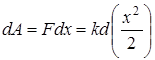 Вычислим работу, совершаемую против упругой силы, при деформации одномерного стержня на dx: