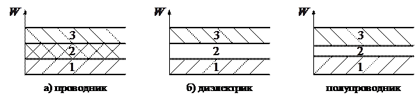 1- валентная зона 2- запрещенная зона 3- зона проводимости