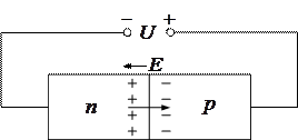 Под действием внешнего поля электроны и дырки будут двигаться навстречу друг другу. При таком движении в объединенном слое n-p увеличивается концентрация носителей заряда, что приводит к уменьшению потенциального барьера и сопротивлению переходного слоя .