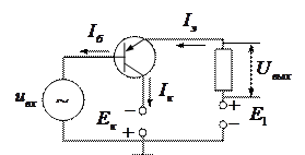 Из рисунка видно, что транзистор представляет по существу два полупроводниковых диода. При замыкании ключа SA1 и разомкнутом SA2 к эмиттерному переходу подключается источник E1 в прямом (пропускном) направлении, а при замыкании ключа SA2 к коллекторному переходу подключается источник E2 в обратном направлении обычно E2>>E1.