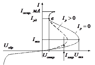 Область аб – область лавинного пробоя. Участок бв – область отрицательного сопротивления, на котором рост тока сопровождается уменьшением напряжения.