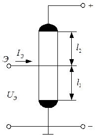 Включение в электрическую цепь осуществляется с помощью двух электродов И и С.