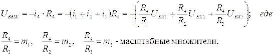 Если к инвертирующему входу подключить несколько сигналов, то можно осуществить их суммирование с масштабными множителями (рис. 3.3).