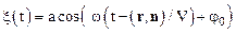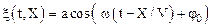 Полученное уравнение является уравнениемгармонической волны, распространяющейся (бегущей) в направлении, заданном вектором n. Очевидно, что функция, описывающая бегущую волну, содержащая периодическую функцию косинуса или синуса, является периодической функцией двух аргументов: времени t и координаты Х.