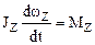 где MZ – суммарный момент сил относительно оси Z, JZ – момент инерции относительно оси, wZ – проекция угловой скорости на ось Z, dwZ/dt=e – угловое ускорение.