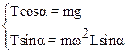 Пусть масса конического маятника равна m. Движение материальной точки происходит в горизонтальной плоскости под действием силы натяжения нити Т и силы тяжести mg(см. рисунок).