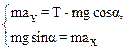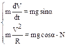 Направим ось Х по касательной поверхности полусферы, ось Y – радиально в направлении ее центра. Проецируя уравнение (1) на оси получим:
