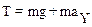На груз m действуют две силы: сила тяжести mg и сила натяжения Т. Основной закон динамики принимает вид: