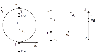 Выберем начало системы координат в центре движущегося по окружности тела так, чтобы ось Х проходила через центр окружности, а ось Y направим вверх. Проецируя уравнение (1) на оси, имеем: