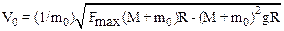 2.13. Пуля попадает в шар массой М, висящий на нити длиной L, и застревает в нем. С какой максимальной скоростью может лететь пуля, чтобы нить не оборвалась? Максимальная сила натяжения, которую выдерживает нить, равна FMAX, масса пули m0.