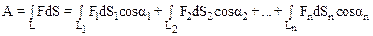 элементарных работ dAi, совершаемых силой на каждом из элементарных перемещений dSi вдоль трактории L: