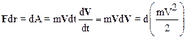 Умножим обе части уравнения скалярно на элементарное перемещение dr и преобразуем полученное выражение с учетом того, что элементарное перемещение dr=Vdt: