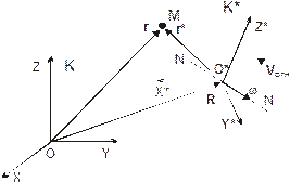 Пусть движущаяся материальная точка М имеет в К* координаты X*, Y* и Z* и ее радиус-вектор равен