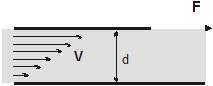 Реальная жидкостьобладает трением. Мы можем измерить меру вязкости жидкости следующим образом. Поместим слой жидкости толщиной d между двумя большими параллельными пластинами, как показано на рис. 9.9.
