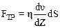 Коэффициент вязкости показывает, какая сила действует на единицу площади соприкасающихся слоев при дополнительном условии dυ/dZ=1. Величина dυ/dZ называется градиентом скорости.