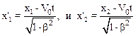 Так как стержень движется относительно К со скоростьюV0, то используя преобразование Лоренца, запишем