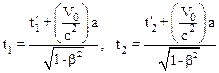 Определим длительность Dt события в системе K. Для времен его начала и конца имеем: