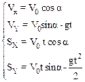 Величины V0cos α; и V0sin α равны проекциям начальной скорости на оси Х и Y, соответственно. Из ортогональности проекций Vx и Vy следует: