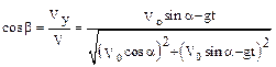 Тригонометрические функции угла β можно найти из разложения скорости снаряда в точке В: