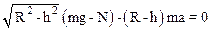 Цилиндр массой m и радиусом R упирается в ступеньку высотой h. С каким наибольшим ускорением можно двигать подставку, чтобы цилиндр не перекатился через упор?