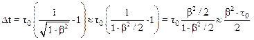 Очевидно, что релятивистское замедление хода часов Dt=t-t0, где t – время в системе отсчета К’, движущейся вместе со спутником со скоростью V0 относительно "неподвижной" системы отсчета К, связанной с Землей. Так как (см. ) местное время t на спутнике равно