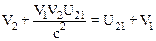 Релятивистское сложение скоростей осуществляется по закону (10.30):