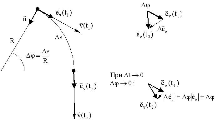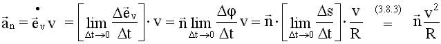 Направление и величину нормального ускорения найдем для частного случая равномерного движения материальной точки по окружности: