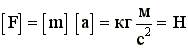 1 ньютон (1Н) - это сила, которая массе 1 кг сообщает ускорение 1 м/с.