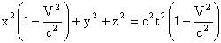 x2 - 2Vxt + V2t2 + y2 + z2 = c2t2,