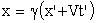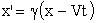 x' = x- Vt, y'=y, z'=z, t'=t-αx