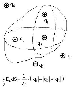 | Из (9.4.2.4) и (9.4.2.5) следует, что поток вектора напряженности электрического поля через ЛЮБУЮ замкнутую поверхность равен алгебраической сумме зарядов, находящихся внутри этой поверхности, деленной на ε0: