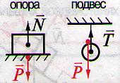 4.32. Сила реакции опоры или подвеса –сила, с которой опора или подвес действуют на тело.