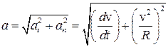 Полное ускорение определяется векторной суммой тангенциального и нормального ускорений